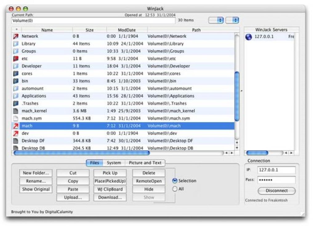 WinJack permite a maqueros navegar por la jerarquía de ficheros y volúmenes perteneciendo a un equipo con Windows. Entre otras funciones, permite borrar, mover, renombrar, cortar y pegar, eliminar e incluso enviar por e-mail algunos ficheros o manipular el Registro de Windows.